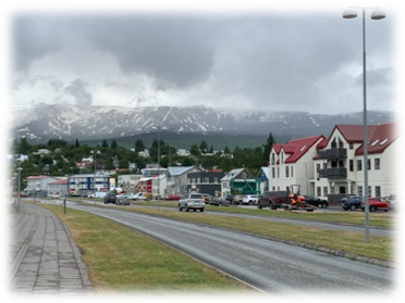 We awoke to a dreary, rainy day. I drove us back into Husavik and took a brief stroll and video of the harbor. There was very little open at 10am and we were in need of a hot shower and better accommodations, so we headed south west to Akureyri.